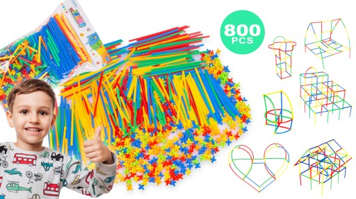 Пазл, що складається з різнокольорових труб і з'єднувачів, завдяки яким маленький підрядник буде створювати чудові просторові будівлі та споруди. Соломки виготовляються в 5 кольорах: червоний, помаранчевий, синій, зелений, жовтий, завдяки чому можна створювати цікаві конструкції з сегментів однакового кольору, цілі творіння в одному кольорі або різнокольорові конструкції.
