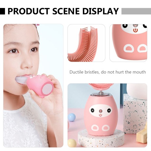 Це U-подібна мультяшна електрична зубна щітка. Виготовлений з харчового силікону та матеріалів ABS. Очищайте поверхню зубів і внутрішню сторону, кожне чищення може забезпечити вам швидкий і комфортний досвід ротової порожнини.