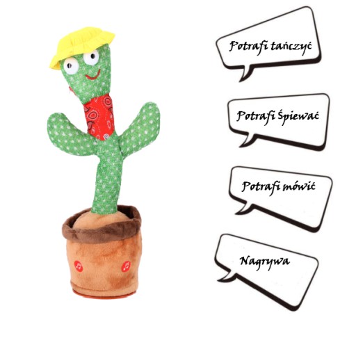 Шопінг-хіт! Іграшка-кактус, що танцює, яка крім таці грає пісеньки і записує звуки, а потім відтворює спотворений голос. Ця іграшка стане чудовим подарунком не тільки для дитини, але й для дорослих, яким буде приємно проводити час зі своїми близькими. У кактуса 8 видів мелодій.