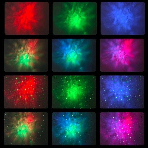 Проектор може відображати імітацію зірок, туманностей і місяця. Завдяки пульту можна контролювати їх швидкість і частоту, колір і яскравість. Ви також можете вимкнути зірки або місяць і залишити туманність у спокої. Пристрій має багато опцій, кожен може налаштувати проекції під себе.
