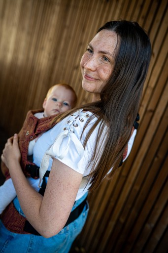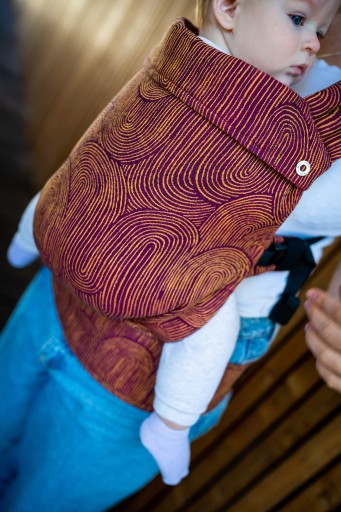 Застібки, що регулюють висоту коміра, є прикрасою люльки і додають їй шарму. Щоб відрегулювати довжину лямок, ми використовували регулювальну стрічку та тонкі магніти, щоб утримувати тканину в потрібному місці, коли ми носимо дитину на спині. З іншого боку, стегновий ремінь і розташована на ньому панель, яка регулює ширину, - це повна інновація, яку ви не знайдете більше ніде. Завдяки використанню смужок на регулювальній стрічці ми, по-перше, можемо дуже точно відрегулювати тримач, а крім того, панель красиво і дуже естетично складається.