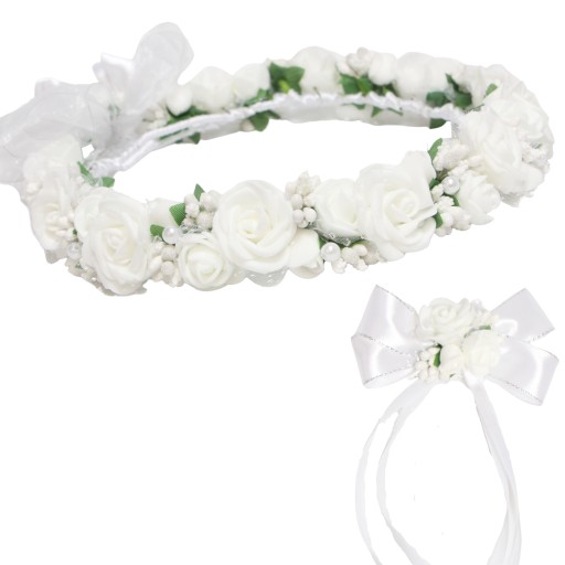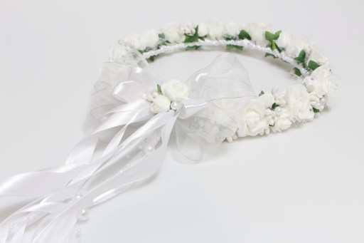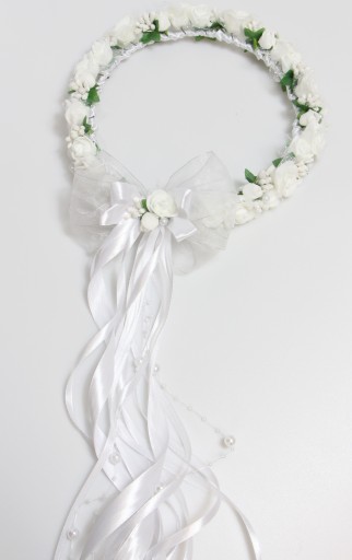 - Знімний бантик з намистинами та стрічками, вінок можна носити з ним і без (без бантика вінок найменший за розміром)