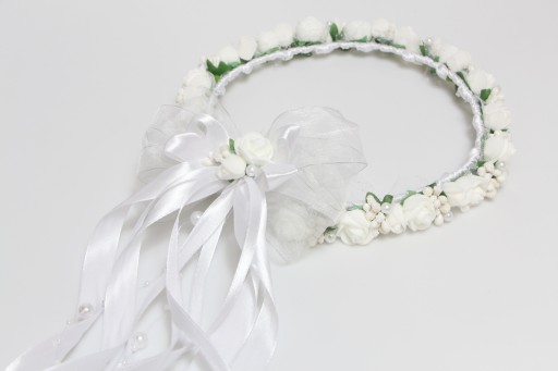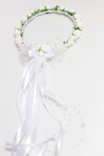 - Знімний бантик з намистинами та стрічками, вінок можна носити з ним і без (без бантика вінок найменший за розміром)