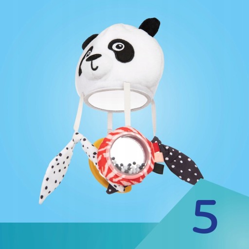Чітко окреслена, контрастна мордочка панди, приємні звуки брязкальця, прорізувача і великого дзеркала залучають і підтримують розвиток почуттів дитини.