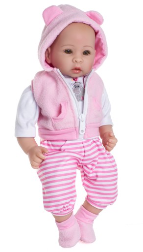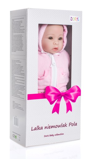 Красива лялька, зроблена з особливою ретельністю, щоб імітувати зовнішність новонародженої дитини. У Полі миле личко та гарні очі. Голова, руки і ноги з м'якої високоякісної гуми, кріпляться до м'якого набивного торсу.