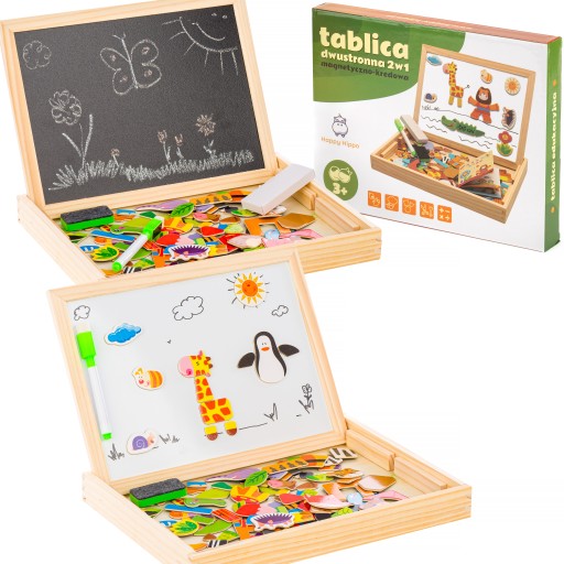 Малюй, стирай, клеї, розфарбовуй - творча розвага, яка завжди приносить багато радості.Двостороння дошка Happy Hippoявляє собою комбінацію традиційної класної та магнітної дошки в наборі з кольоровими магнітами, маркером, крейдою, губкою.