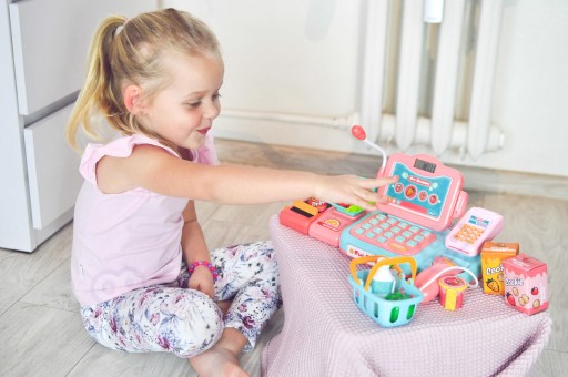 Касовий апаратта аксесуари відвід Woopieє чудовим вибором для дітей від3 роки. Іграшкарозвиває у дітей уяву та спонукає до творчого мислення. Діти можуть зважувати фрукти та овочі, а потім наклеювати їх за допомогою клавіатури комп’ютера. За допомогою зчитувача вони сканують упаковку печива або пляшку води. Тоді ви можете оплатити двома способами:традиційно за допомогою монет, платіжної картки. Все це входить в набір і подарує вашій дитині години задоволення.