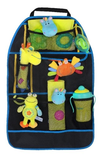 Автомобільний органайзер призначений для зберігання дитячих іграшок та аксесуарів, які знадобляться під час подорожі. Крім того, він захищає спинку попереднього сидіння від бруду. Він оснащений численними сітчастими кишенями, які полегшують упорядкування та пошук речей. Універсальний розмір підходить для будь-якого автокрісла. Гнучкі кріплення полегшують збірку і не пошкоджують поверхню крісла. Властивості: • універсальний, підходить для будь-якого автокрісла • місткий, у спеціальних кишенях можна носити пляшки, аксесуари, іграшки • допомагає підтримувати порядок в автомобілі • легко збирається Технічні дані: - розміри: 60 x 38 см - вага: 0,13 кг