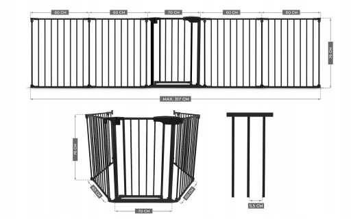 Вся система Guardian 6.0 дозволяє будь-яке поєднання та видалення стін. Базовий продукт складається з 4+1 компонентів, але ніщо не заважає вам використовувати лише 3, або купити додаткові та встановити манеж більшого розміру чи перекрити широкий прохід, наприклад, з 9 компонентів.