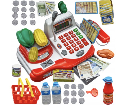 Касовий апарат має робочий мікрофон і вбудований калькулятор. Крім того, ви також знайдете тут зчитувач коду, як у справжньому магазині. Щоб закрити обліковий запис, натисніть кнопку =. Коли ви завершили покупки, настав час оплати. А тут ще більше можливостей. Готівки при собі немає, тільки картку? Це не проблема :) Касовий апарат дозволяє розраховуватися платіжною карткою або традиційно готівкою. Щоб відкрити касу - просто натисніть кнопку «Відкрити».
