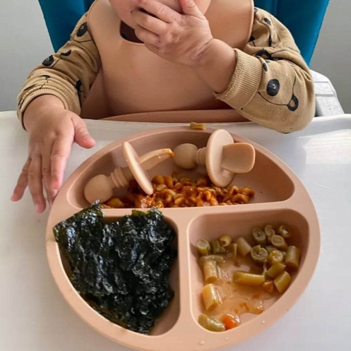 Фантастичне рішення, ось вонодуже практичнийплита виготовлена зхарчовий силікон. його використанняусуває ризикупускати тарілку з вечерею, як це буває зі звичайним посудом.Кориснийвдома та в дорозі. Ідеально підходить для навчання дитиниїсти сам.