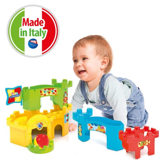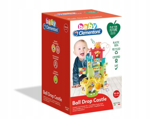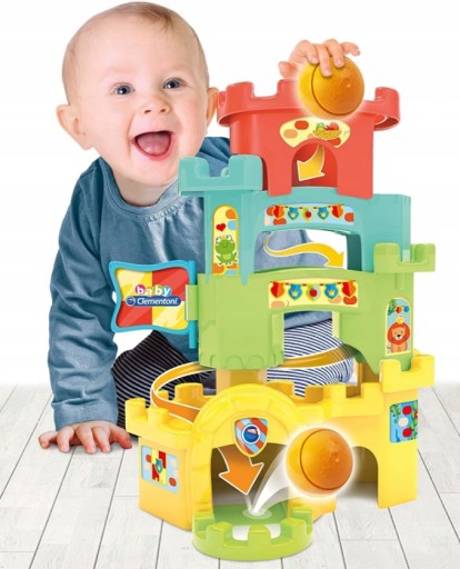 Дитина може прослідкувати шлях м’яча по стежці всередині замку та вздовж стін: опустіть м’яч на вершину вежі та спостерігайте, як він рухається різними рівнями, поки не зупиниться у дворі перед входом.