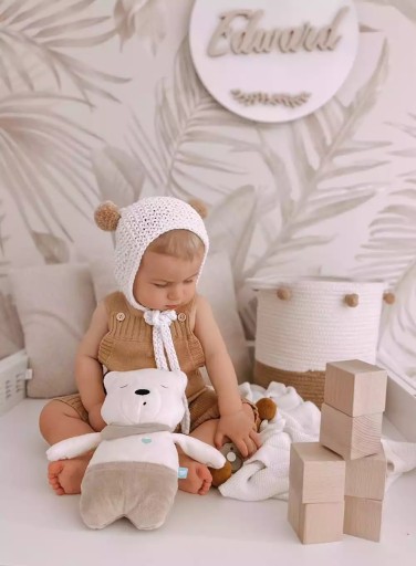 Це ведмедик, яким ми можемо пишатися, адже всі ведмедики Szumisie на 100% виробляються в Польщі. Ми шиємо їх у своїй швейній біля кошари, а сердечка сплячого ведмедя виробляємо у Варшаві.