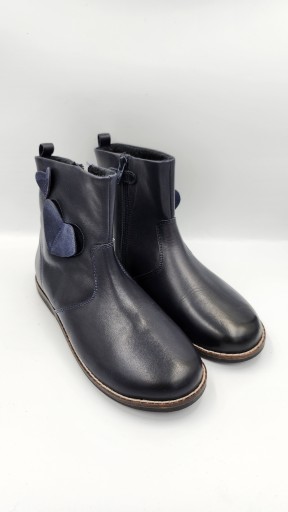 Чоботи дитячі Friboo з гладкої натуральної шкіри темно-синього кольору. Легко утеплений, ідеальний для перехідного періоду. Верх прикрашений сердечками