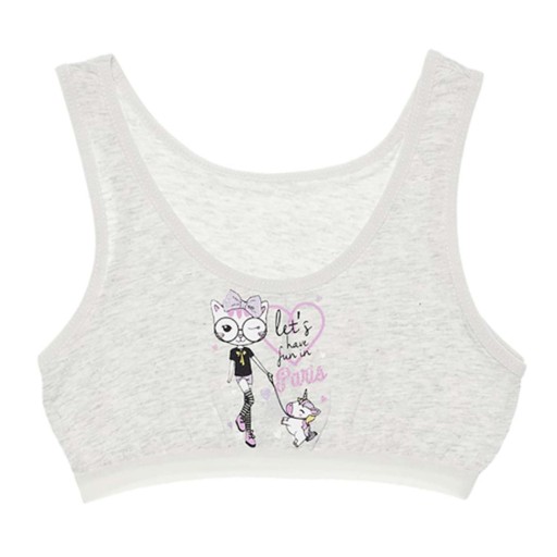 Великий набір з 5 дитячих бюстгальтерів пастельних кольорів. Чудовий принт з блискучими елементами. Продукція LILLY BLING відрізняється високою якістю. Нижня білизна з високоякісної м'якої бавовни. Еластичні стрічки м'які і не розтягуються під час використання. Ідеально підходить для занять спортом і на кожен день.