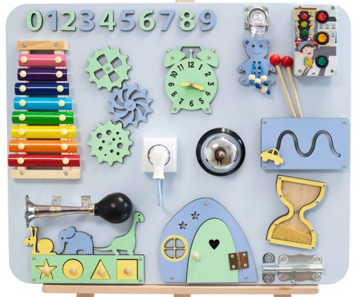 Маніпуляційна дошка для дітей привертає увагу найменших і стимулює їх уяву. Він чудово поєднує навчання та розваги, надаючи вашій дитині багато переваг. Правильно підібрані рухливі та ігрові елементи сприятимуть розвитку творчих здібностей вашої дитини та ручних здібностей. Крім того, це стимулюватиме в ньому винахідливість і спонукатиме його досліджувати навколишній світ.