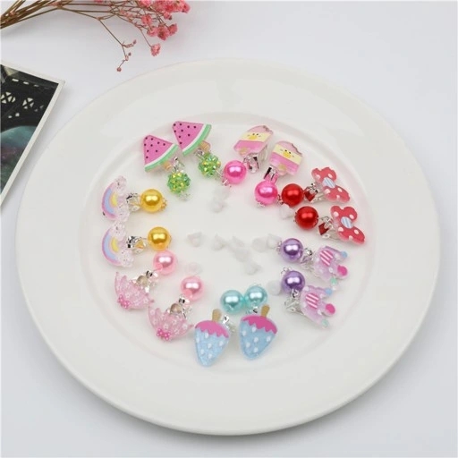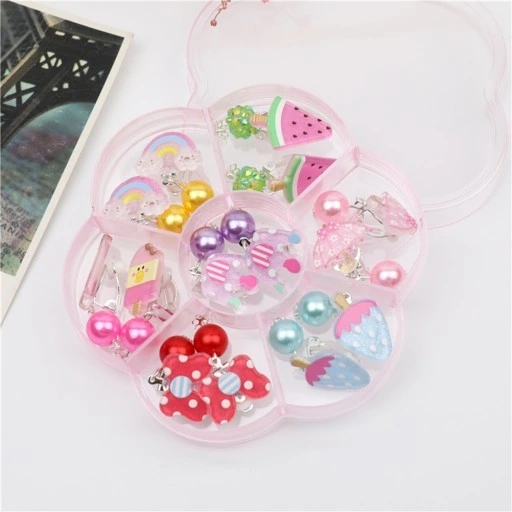 Це 7 пар сережок. Її стиль змушує маленьких дівчаток поводитися як принцеси. Виготовлений з матеріалу, він не сколюється і не тьмяніє. Яскравий колір і милий ефект роблять його веселішим і привабливішим для маленьких дітей. Він підходить для багатьох стилів, одягання та інших випадків.