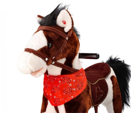 Дерев'яні жердини та ручка означають, що, залежно від їх розташування, кінь може бути качалкою або їздовою. Вам не потрібно нічого розбирати, просто відстібніть ремінь і переверніть колесо на інший бік.