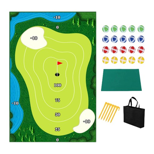 : Тренувальний килимок для гольфу: підходить для використання на відкритому повітрі та в приміщенні, допоможе вам виправити ваші основні помилки. Простий у використанні: набір для гольфу можна налаштувати менш ніж за 60 років, цього достатньо, щоб діти могли налаштуватися. І легко зберігати та переносити. Широке застосування: тренувальний килимок для гри в гольф на відкритому повітрі ідеально підходить для подорожей, вечірок, офісів, на задньому дворі чи навіть на пляжі, і ви можете насолоджуватися грою в гольф на задньому дворі чи у внутрішньому дворику. Чудовий допоміжний засіб для тренувань у гольф: дає вам справжнє чудове відчуття від ударів, водіння, чипінгу та укладання. Мати для гольфу підходять для гравців із будь-яким рівнем навичок. Гарний подарунок: ідеальний подарунок на день народження для любителів гольфу. Таблиця розмірів: Товщина: 0,3 см/0,12 дюйма Ігровий коврик: 80 см х 150 см/31,50 дюйма х 59,06 дюйма Ватин: 20 см х 30 см/7,87 дюйма х 11,81 дюйма М’яч: 4,3 см/1,69 цілий