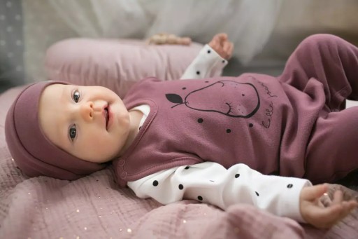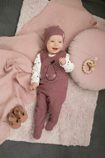 Ластовица, вшита в промежину, забезпечує дитині комфорт під час носіння, а також дозволяє легко вмістити підгузок. Крім того, вони застібаються на зручні застібки на плечах і в промежині, що значно полегшує зміну підгузників. Наші дитячі пісеньки для дівчаток є невід’ємним елементом дитячого ліжка, а також ідеальною ідеєю для подарунка на свято дитини. З каптаном або боді з цієї ж колекції створіть чудовий комплект, у якому ваш малюк із задоволенням пізнаватиме світ. Рекомендації щодо прання: макс. 40С Склад: 100% бавовна.