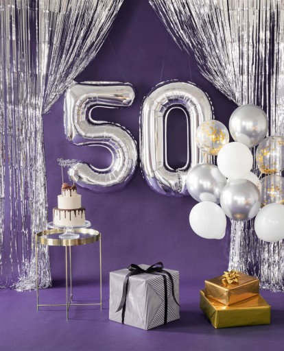 - Motyw: srebrny brokatowy napis "Happy Birthday".