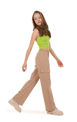 - крій з модними широкими штанинами та бічними кишенями,