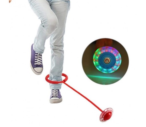 Скакалка LED Skipper - ідеальна аркадна іграшка, яка розвиває рухову координацію дитини. Пристрій має гумове колесо, оснащене світлодіодами, що світяться, що робить розвагу ще привабливішою. Чим швидше ви обертаєте хулахуп, тим яскравіше світяться ці світлодіоди! Обруч для ніг і колесо зі світлодіодами з'єднані жорстким з'єднувачем, через який потрібно ритмічно стрибати під час гри.