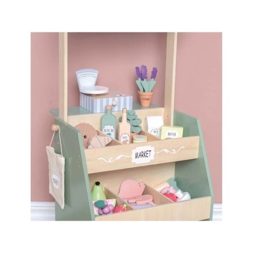 Дерев'яний магазин з багатим обладнанням - підставкою на ніжках шведського бренду Jabadabado - це гарантія вдалого, креативного та смачного задоволення! Цей чарівний набір надзвичайно багатий, у ньому є все необхідне! Всі діти люблять грати в магазин - пересувний кіоск з великим візком з фруктами, овочами, рибою та хлібом - дозволить робити покупки всім плюшевим ведмедикам, лялькам і членам сім'ї. Гра «Будиночок або магазинчик» — це чудовий спосіб стимулювати дитячу уяву, розвивати словниковий запас, а пакування товарів — тренувати спритність рук і координацію рук і очей. чудовий подарунковий набір!