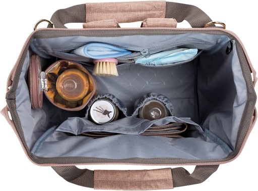 численні внутрішні кишені, які дозволяють добре організувати простір, включаючи: більшу водонепроникну кишеню на блискавці (для мокрого одягу або підгузків), дві менші відкриті, більшу на липучці для пеленального столика та дві менші готові з гумкою, ідеально підходить для баночок з обідом або напоєм, прикріплені застібки, які при необхідності можна відстібнути; всередині ідеальне місце для серветок або запасу лінійок