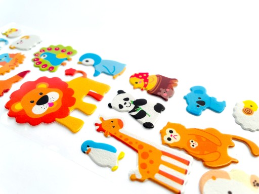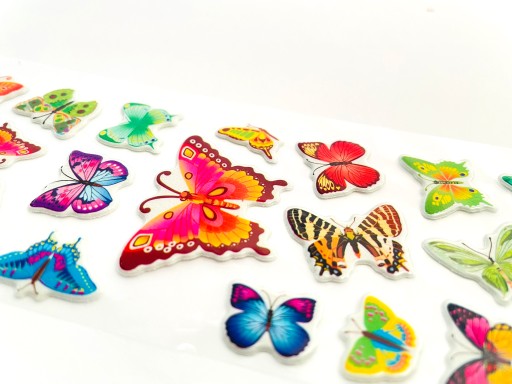 Наклейки виготовлені з ламінованої фольги, стійкої до вологи, графіка має високу роздільну здатність, друк якісний, що гарантує тривалий термін служби. Нетоксичний без запаху. Розмір однієї наклейки від 1 до 6 см