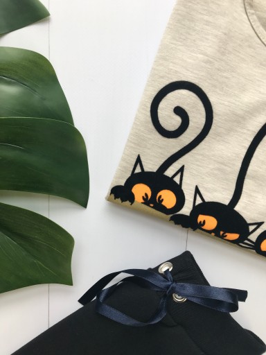 Бавовняна блуза для дівчинки з довгим рукавом,розмір 104 - 4 роки.Колір: бежевий, чудовий принт із котиками спереду.