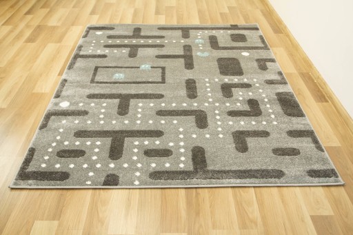 Колекція килимів LIMA включає в себе аксесуари, призначені для найменших - милі візерунки та цікаві кольори складають красиво представлений фліс, який сподобається кожній дитині! Килим в дитячій кімнаті виконує багато функцій - він теплоізолює, є місцем для ігор і прикрашає інтер'єр. Килими Lima виткані з поліпропіленової пряжі, їх низ виготовлений з джуту. Представлений килим прикрашений крапковим візерунком сірих, кремових і блакитних відтінків і нагадує сцену з комп'ютерної гри.
