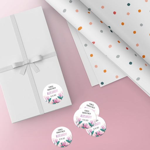 Наклейки — ідеальний продукт, який дозволяє легко створювати персоналізовані елементи на вечірці Першого Причастя. Ними можна прикрасити конверти із запрошеннями, подарунки для гостей, такі як цукерки, льодяники; їх можна приклеїти на коробку для торта або на листівки. Також стікерами можна покрити елементи, які ми розміщуємо на столі, наприклад, графини для води, вази, пляшки, підсвічники, серветниці, чашки або будь-які інші плоскі поверхні, завдяки чому стіл набуде неповторного, урочистого характеру.