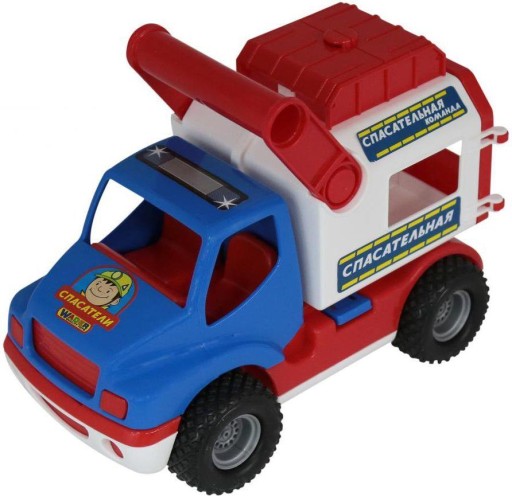 РЯТУВАЛЬНА МАШИНА оснащена чотирма широкими гумовими колесами. Їх структура шорстка, що полегшує їзду по різних типах поверхонь (трава, пісок). Причіп можна підняти завдяки спеціально прикріпленій ручці. Задня кришка відкривається, тому дитина може легко розмістити в ній улюблені фігурки або інші аксесуари.