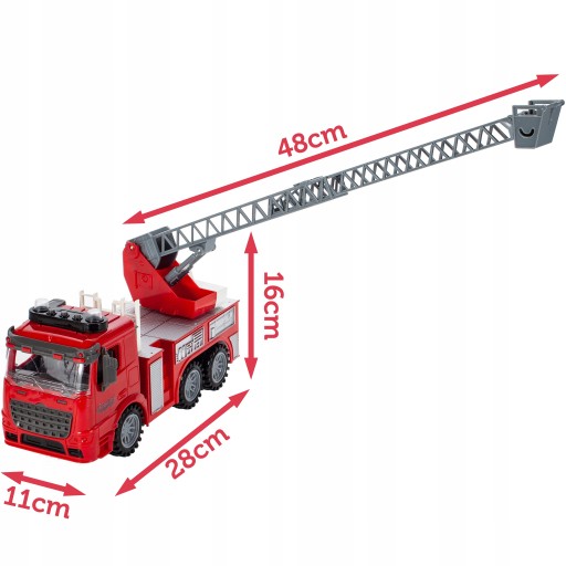 Червона пожежна машина з висувною, обертовою драбиною з кошиком і рухомими колесами з приводом - просто поставте машину на підлогу, штовхніть її вперед і дайте машині поїхати вперед!