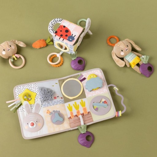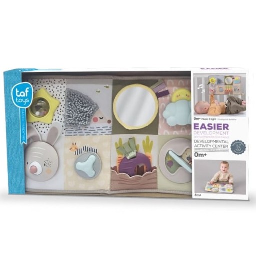 - Етап 2 (3 м+): «Час на животику» — багато функцій для гри та дослідження, щоб забезпечити тривалу гру, поки дитина лежить на животику. Іграшка також може стояти самостійно, заохочуючи ігри з животиком.