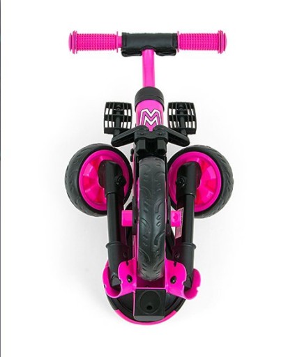 Неоціненною перевагою є можливість переробити його з триколісного «раннера» в триколісний велосипед з педалями.Завдяки цьому ваша дитина зможе довше насолоджуватися цим незвичайним велосипедом. «рос» з ним. М'які протиковзкі ручки з чохлами захистять ручки вашої дитини. Також є обмежувач повороту, щоб дитина не крутила кермо, унеможливлюючи їзду.