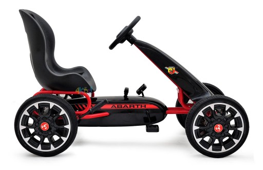 Великий спортивний педальний картинг за ліцензією Abarth,розроблений для наймолодших водіїв. Легка металева конструкція з пластиковими чохлами і ковшеподібне сидіння з регульованою відстанню від керма, спортивне кермо і великі поролонові шини з міцного пластику EVA забезпечать комфорт і зручність на будь-якій поверхні. Картинг має вбудований ланцюговий привід педалей з можливістю перемикання передньої і задньої передач, а також функцію «вільний хід» і ручне гальмо на задній осі.