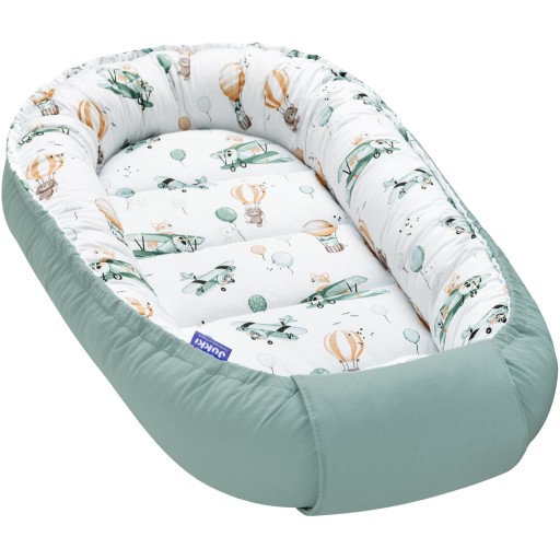 - двосторонній дитячий кокон із зовнішніми розмірами: 55 х 100 см, розміром спального місця: 30 х 70 см, товщиною борту 14 см.