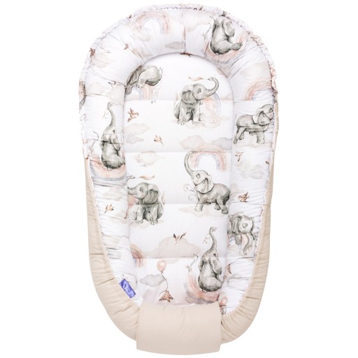 - Двосторонній дитячий кокон з зовнішніми розмірами: 55 х 100 см, розміром спального місця: 30 х 70 см, шириною бортика 14 см,