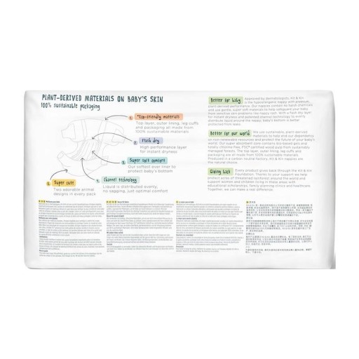 Підгузки біорозкладні та гіпоалергенні. Не містять потенційно алергенних речовин, таких як латекс або фталати. Бренд Kit&Kin є членом PETA (People for the Ethical Treatment of Animals) і World Land Trust - благодійної організації, яка збирає кошти на захист лісів в Африці, Азії, Центральній і Південній Америці.