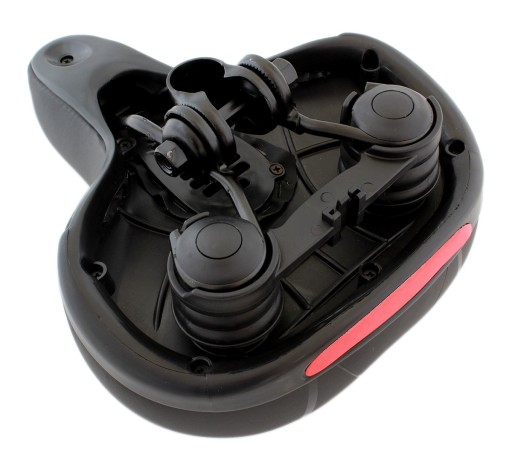 Надзвичайно зручне гелеве велосипедне сидіння. Ідеально підходить для людей, які відчувають дискомфорт на стандартних сідлах під час тривалих поїздок на велосипеді. Оснащений спеціальним анатомічним отвором, який покращує вентиляцію та подвійну амортизацію, підвищуючи комфорт водіння. Підвішена на 2 штангах, що значно підвищує її стійкість. Додатковий червоний відбивач на задній частині сідла дає можливість відмовитися від класичної лампи на задній частині велосипеда.
