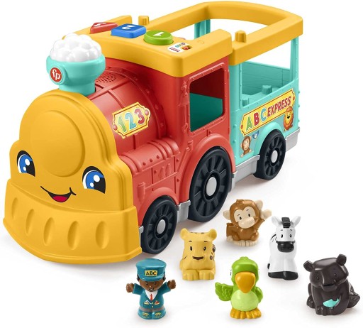 До цього великого кнопкового іграшкового поїзда з підсвічуванням, звуками, музикою та фразами додається 5 фігурок тварин Little People, яких можна брати з собою в подорож. Поки маленькі провідники кличуть своїх екзотичних пасажирів по вітальні, навчальний контент знайомить їх зі світом літер, рахунку, кольорів тощо.