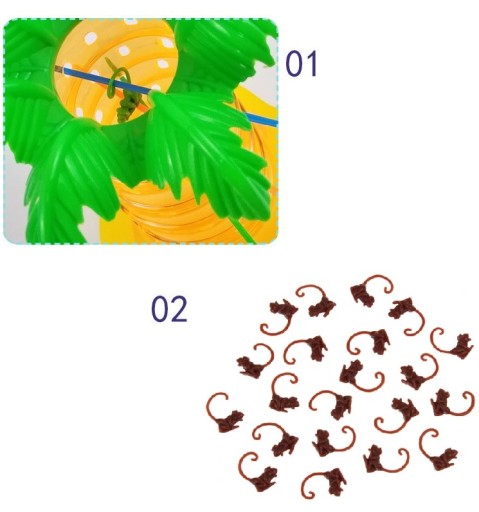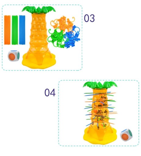 Гравці кидають кубик, а потім витягують з долоні паличку того кольору, який був кинутий на кубику. Його потрібно розтягнути, щоб мавпочка не впала. Перемагає той, хто збере найменшу кількість мавп.