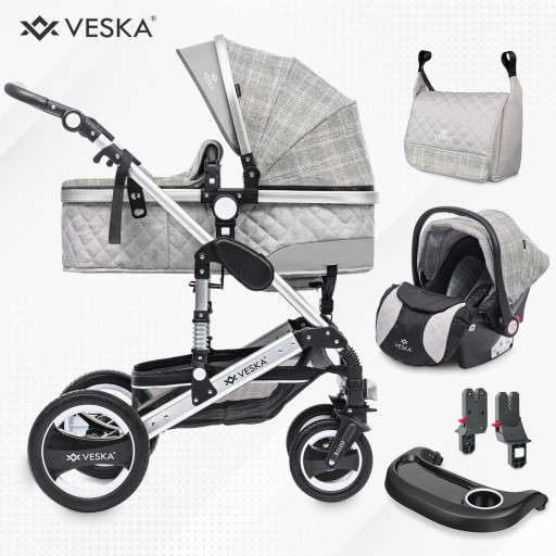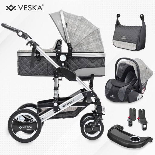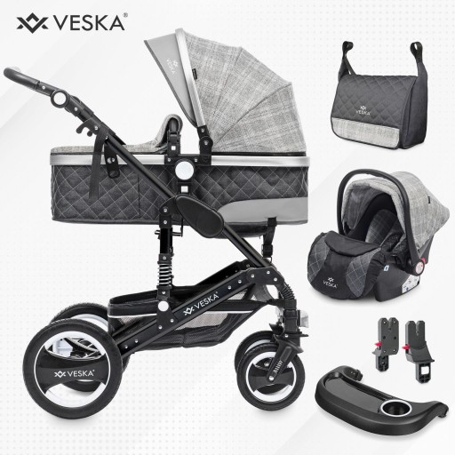 Коляска 3 в 1 Deluxe від VESKA® поєднує в собі класичну коляску, ергономічну коляску, спортивний джогер і дитяче автокрісло, яке можна прикріпити до рами коляски легким рухом руки. Тож ви можете просто дати своїй дитині поспати після поїздки в машині, не тягаючи її з собою.
