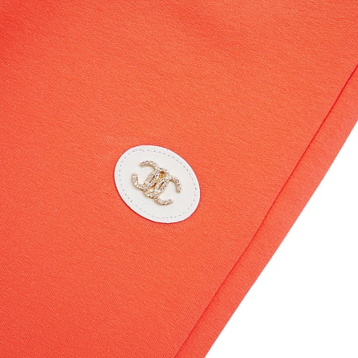 Бавовняні приталені легінси з декоративною мерехтливою синьою строчкою від великого польського виробника GAMET. Штани з бавовняної тканини оранжевого кольору.