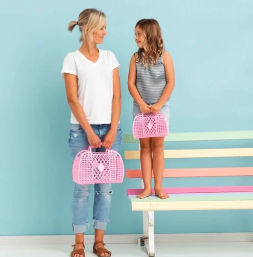 Стильний і повний шарму. Пластиковий кошик RETRO натхненний вінтажним стилем, як і інші товари відомого англійського бренду Sun Jellies. Він викликає асоціації з божевільними 1960-ми - геометричні візерунки, соковиті кольори та смілива, безтурботна форма. Ви повинні мати його у своєму гардеробі! Виберіть свій маленький кошик RETRO в одному з 5 кольорів цукерок.