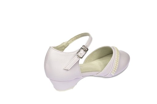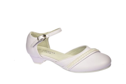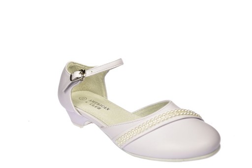 Туфлі для причастя для дівчаток, білі балерини на високих підборах, застібаються ремінцем American Club