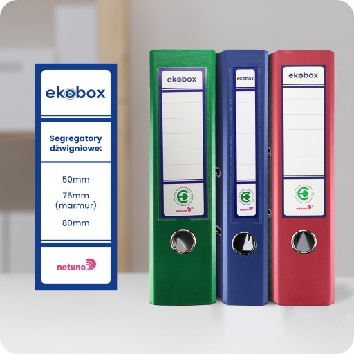 Швидкозшивач Ekobox є найбільш часто використовуваним продуктом для систематизації та архівування документів. Використовується в офісах, школах і вдома, він допомагає зберігати важливі нотатки впорядкованими та організованими. Завдяки металевій фурнітурі він стійкий до стирання при частому переміщенні. Оснащений зручним отвором для пальців, що полегшує витягування швидкозшивача з полиці. Сучасна система важелів допомагає відкрити кільця, а металевий затиск утримує документи на місці. Палітурка в 12 красивих інтенсивних кольорах - підходить для школярів, студентів і офіційних осіб. Знімна етикетка з описом дозволяє використовувати один продукт кілька разів.