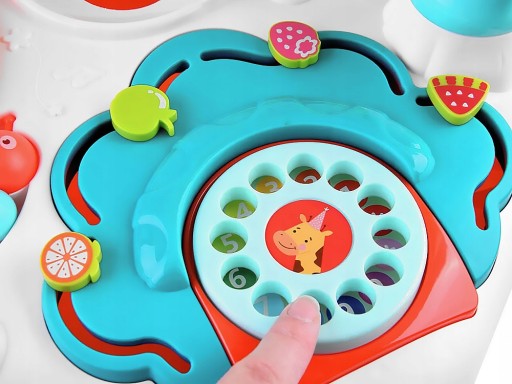 Столик, який навчає і розважає, забезпечуючи інтерес малюка надовго. Кулькова гірка, музичний тукан або елементи, що обертаються, перенесуть вашу дитину в країну веселощів, повну фарб і мелодій, стимулюючи її уяву.